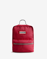 Your mini-me will love being just like the grown-ups with the Original Kids Backpack. The water-resistant black nylon exterior is perfect for adventurous kids while the square design and padded straps ensure complete comfort for everyday wear. As a firm member of the Hunter Original family, this kids backpack features the Hunter red, white, and black core zip as well as moustache detailing in a nod to our iconic Original Tall Rain Boot Boot.