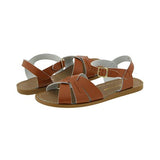 Walter Hoy first made these in his work shop circa 1944. The Original Salt-Water® Sandal is defined by its hand-stitched, non-slip, molded rubber sole and scuff-resistant, water friendly genuine leather upper. All Salt-Water® Sandals clean up very easily, come with rust-proof brass buckles, and made for in-and-out of water wear. They go from children’s sizes all the way up to adult sizes and are popular among celebrities and fashionistas alike. They are a comfortable, durable combination of timeless style. The tan Salt-Water® Sandal was the first color to be made from scrap World War II boot leather in 1944. These versatile sandals combine comfort, fashion and functionality.